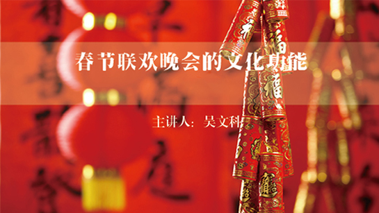 主讲人提出“春节联欢晚会”除了具有娱乐、认识、教化、审美等功能外,还特别被限定了内容的主题与整体的格调,赋予更为巨大和深刻的社会政治功能。央视春晚具有自身的特殊品格——激扬民族精神、促进民族团结、象征国家昌盛、创新民俗内容。
